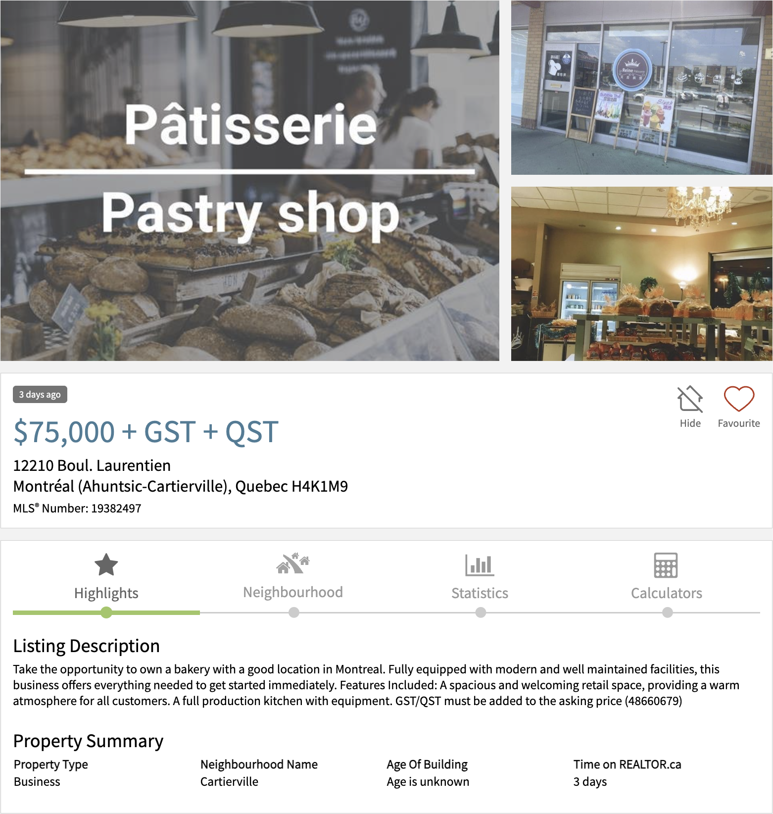 Below is a sample listing from realtor.ca for a pastry shop: